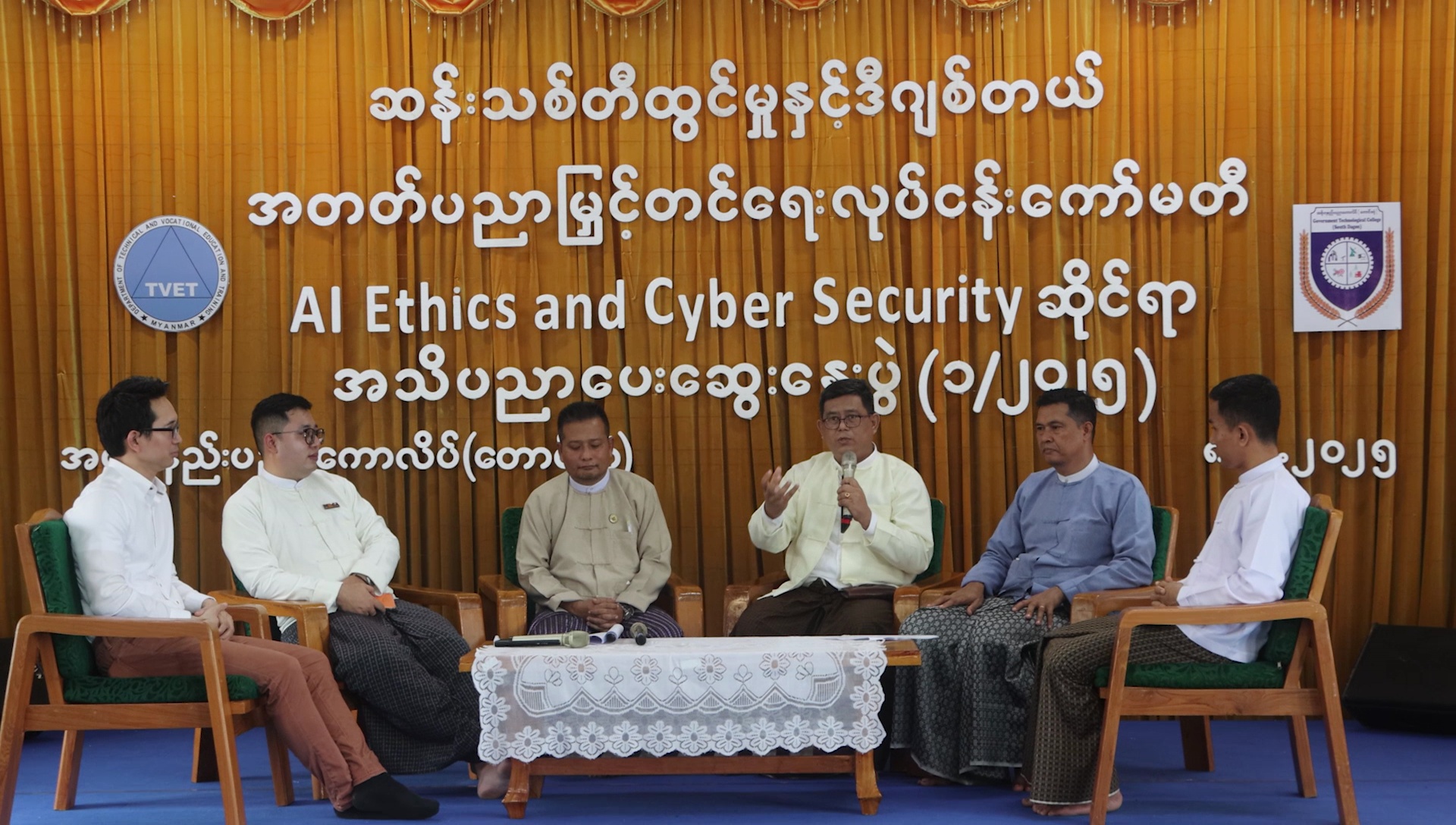 နည်းပညာ၊ သက်မွေးပညာနှင့်လေ့ကျင့်ရေးဦးစီးဌာန၊ အစိုးရနည်းပညာကောလိပ် (တောင်ဒဂုံ) ၌ AI Ethics and Cyber Security ဆိုင်ရာ အသိပညာပေးဆွေးနွေးပွဲကို ၂၀၂၅ ခုနှစ်၊ ဇူလိုင်လ၊ (၈) ရက်၊ အင်္ဂါနေ့၊ နေ့လယ် (၁: ၃၀) နာရီအချိန်တွင် ကျင်းပပြုလုပ်ခဲ့ပါသည်။