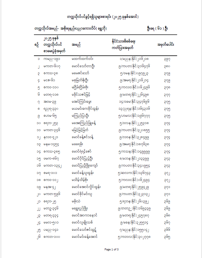 ကြေငြာချက်များ နောက်ဆုံးရသတင်းများ ၂၀၂၅-၂၀၂၆ ပညာသင်နှစ် အစိုးရနည်းပညာကောလိပ်(ရွှေဘို) ပထမနှစ် ဝင်ခွင့်ရသူများစာရင်း By website admin On November 13, 2025November 13, 2025 Post Views: 198