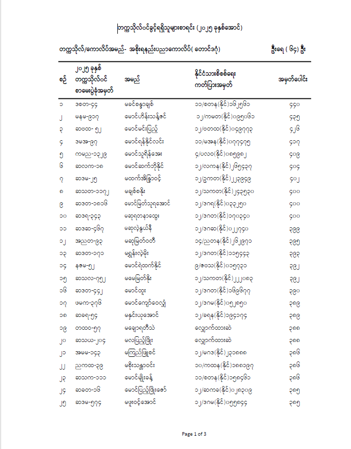 ကြေငြာချက်များ နောက်ဆုံးရသတင်းများ ၂၀၂၅-၂၀၂၆ ပညာသင်နှစ် အစိုးရနည်းပညာကောလိပ်(တောင်ဒဂုံ) ပထမနှစ် ဝင်ခွင့်ရသူများစာရင်း By website admin On November 13, 2025November 13, 2025 Post Views: 221
